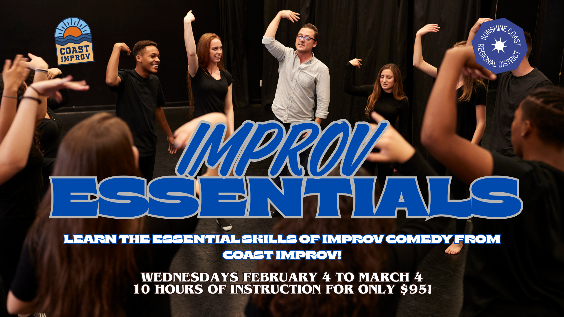 Join Coast Improv for a week of Improv Comedy classes with the Coast’s own Asha Lebreche! Youth will learn all the fundamentals of improvisational theatre while also learning lifelong skills like storytelling, problem solving, and the power of positive thinking. If you are a young person age 13-17, come join the fun and spend your spring break laughing!